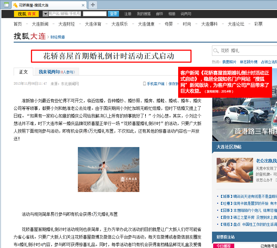 “花轎喜屋”大連喜客文化軟文發(fā)布