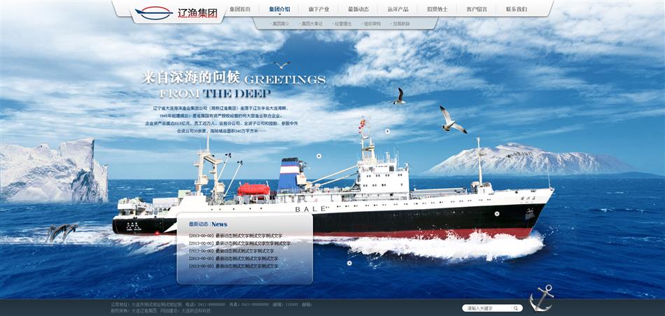 遼寧省大連海洋漁業(yè)集團(tuán)公司(簡稱遼漁集團(tuán))坐落于遼東半島大連灣畔, 1945年組建成立,是省屬國有資產(chǎn)授權(quán)經(jīng)營的特大型漁業(yè)聯(lián)合企業(yè)。企業(yè)資產(chǎn)總值達(dá)63.5億元,員工近萬人,設(shè)有分公司、全資子公司和控股、參股中外合資公司30余家,海陸域總面積340萬平方米,目前已形成集海洋捕撈、港口航運(yùn)、水產(chǎn)品交易、水產(chǎn)品加工、冷藏、國內(nèi)外營銷、船舶修造、地產(chǎn)開發(fā)、物資供應(yīng)等多產(chǎn)業(yè)多元化的經(jīng)營格局,成為國內(nèi)同行業(yè)最具綜合規(guī)模優(yōu)勢、產(chǎn)業(yè)鏈條最為完整的現(xiàn)代化漁業(yè)基地。