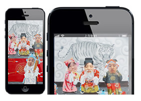 ■ 多人扮演功能:同一場景內(nèi)部,預制多個人物形象,人物頭像通過拍照或本地圖片選擇,并可添加各種臉部扮演效果,最終形成生動有趣的全家福。