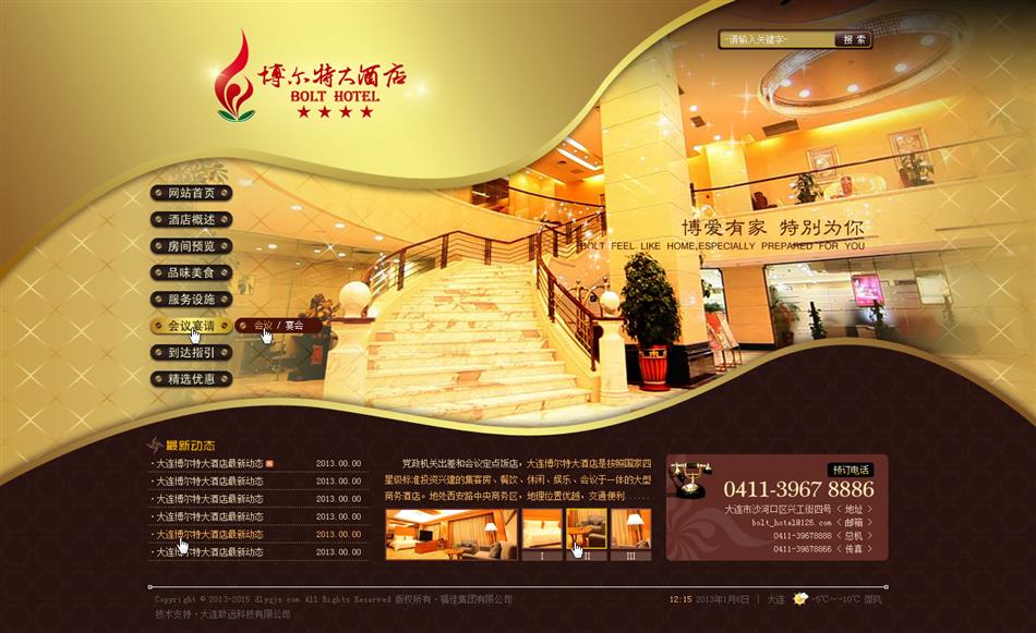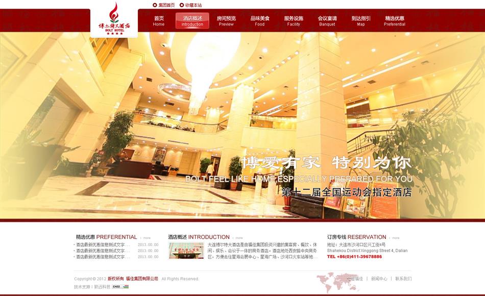 大連博爾特大酒店是按照國(guó)家四星級(jí)標(biāo)準(zhǔn)投資興建的集客房、餐飲、休閑、娛樂、會(huì)議于一體的大型商務(wù)酒店。地處西安路中央商務(wù)區(qū),地理位置優(yōu)越,交通便利。乘車距機(jī)場(chǎng)15分鐘、距火車站10分鐘、距海港20分鐘,星海會(huì)展中心、星海廣場(chǎng)近在咫尺。酒店總建筑面積近2.4萬平方米。裝修典雅,設(shè)施齊全,擁有各類客房280間,其中標(biāo)準(zhǔn)單人間36間、標(biāo)準(zhǔn)雙人間205間、標(biāo)準(zhǔn)套房30間、商務(wù)套房5間、行政套房3間、豪華套房1間 。房間內(nèi)均配有現(xiàn)代化的設(shè)備設(shè)施。為滿足賓客的多層次需求,酒店還設(shè)有洗衣、票務(wù)、打字、復(fù)印、接機(jī)、旅游預(yù)定、