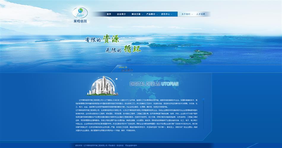 “有限的資源,無(wú)限的循環(huán)”是這個(gè)網(wǎng)站的設(shè)計(jì)理念。在色調(diào)上選用了藍(lán)色與綠色結(jié)合;在元素上選則了玻璃質(zhì)感的元素,使頁(yè)面視覺(jué)上比較清爽!在布局上選用了大背景海天相連給人一種大氣的感覺(jué)!