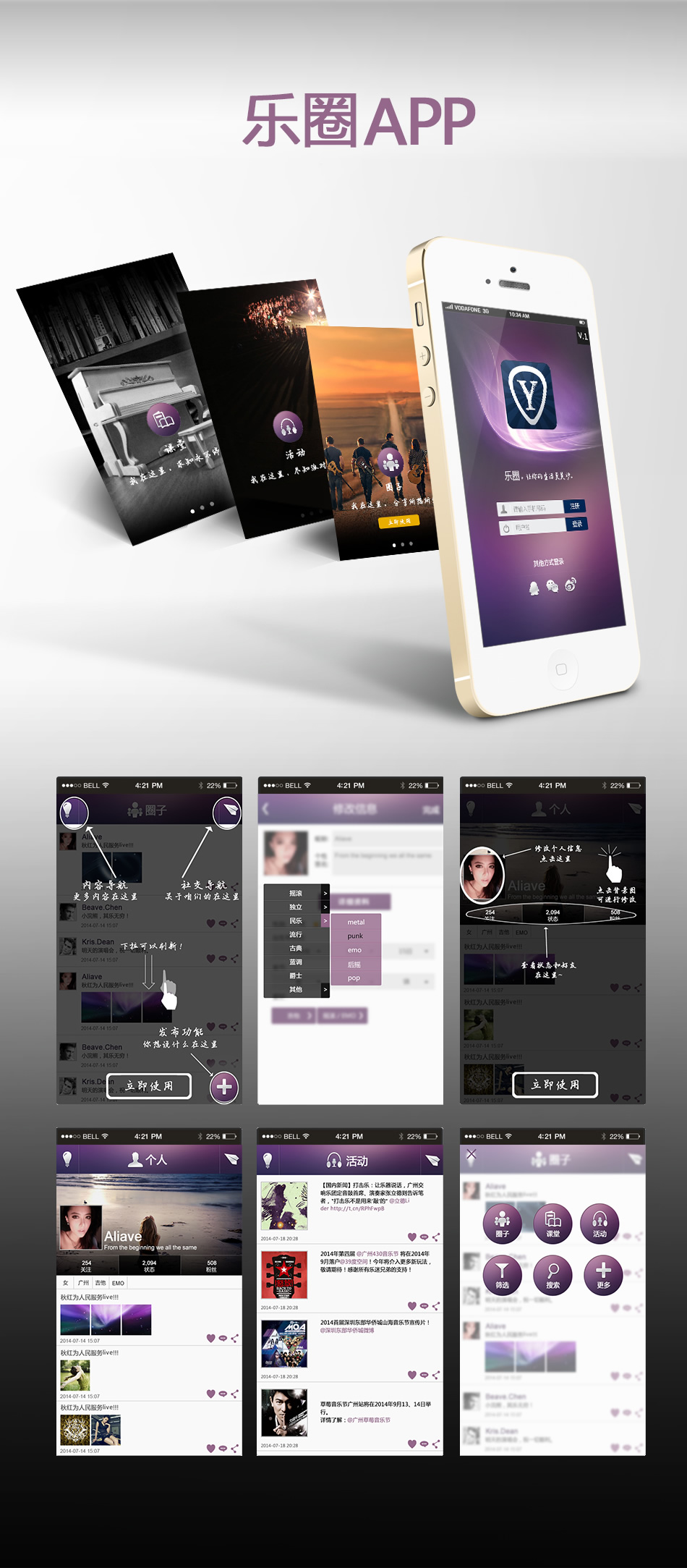 主要功能:課堂、活動(dòng)、圈子、收藏、評(píng)論、個(gè)人主頁;其他功能:注冊(cè)、登陸、搜索、篩選、設(shè)置、反饋、修改信息;課堂功能:通過分享小知識(shí)、測評(píng)、專業(yè)性文章、教學(xué)信息和視頻等內(nèi)容,滿足有相關(guān)學(xué)習(xí)需要的用戶;圈子功能:一個(gè)公開的社交發(fā)布?jí)Γ灰潜井a(chǎn)品的用戶,就可以在上面發(fā)布自己的狀態(tài)及所想所感,同時(shí)也可以看到其他所有用戶發(fā)布的內(nèi)容,并且可以與其他用戶在評(píng)論中進(jìn)行即時(shí)交流;評(píng)論功能:用戶可以在這里看到圈子中或是資訊文章中即時(shí)發(fā)出的評(píng)論以及回復(fù),讓用戶能通過此板塊進(jìn)行即時(shí)交流。